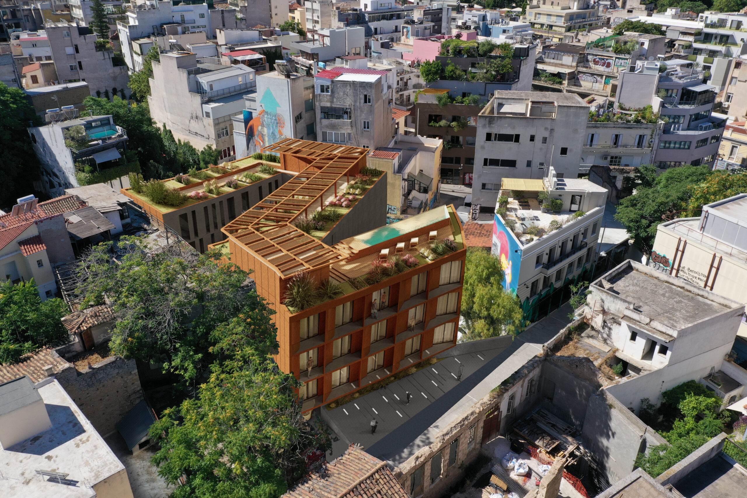 The proposal is for a 5 star hotel, with 100 bed capacity in Psiri, in the heart of the city of Athens